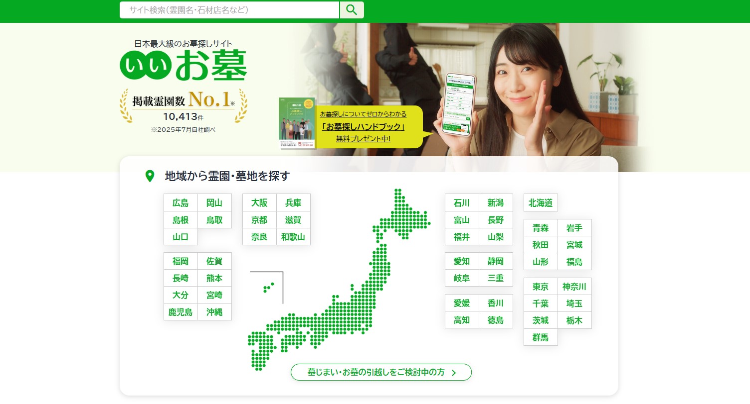 いいお墓は全国の霊園・墓地・納骨堂の情報を一括で検索できるポータルサイトです。