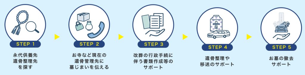「わたしたちの墓じまい」への相談から墓じまい完了までの流れ